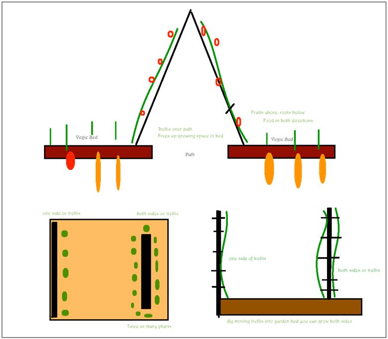 - Trellis over pathways to free up garden bed.